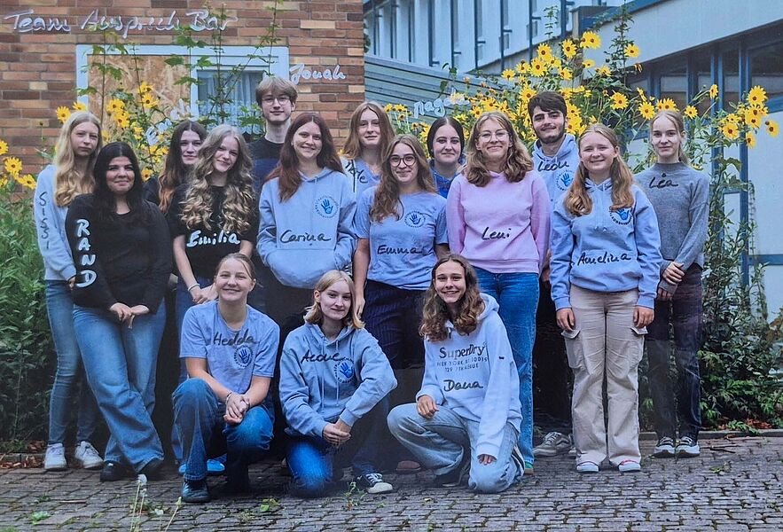 Wir sind das Team Ansprechbar – früher kanntet ihr uns als die Streitschlichter. Wir haben unseren Namen geändert, weil wir nicht nur bei Streit helfen, sondern bei allen Sorgen und Problemen für euch ansprechbar sind. Bei uns könnt ihr mit allem vorbeikommen, was euch beschäftigt, oder einfach mal reden. Wir sind immer in der ersten großen Pause für euch da und haben ein offenes Ohr. Das Besondere an uns: Wir arbeiten ohne Lehrer, sodass ihr ganz in Ruhe mit uns sprechen könnt. Alles, was ihr uns erzählt, bleibt unter uns – wir haben Schweigepflicht! Egal, ob es um Stress, Ärger oder etwas anderes geht, wir hören euch zu und unterstützen euch. Ihr könnt einfach vorbeikommen, die Tür steht immer offen. Traut euch, wir freuen uns auf euch!
