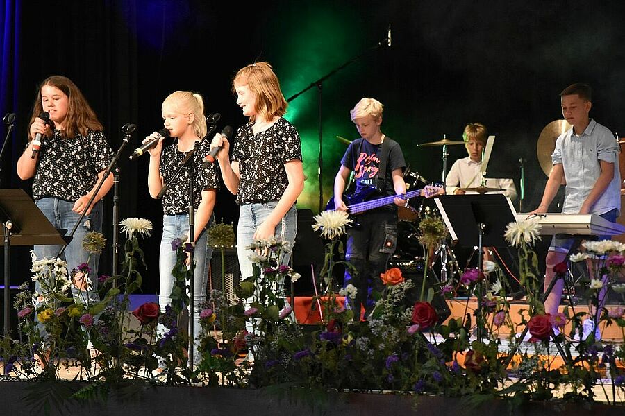 Die drei Grundelemente einer Rockband: fetziger Rhythmus, verstärkte Instrumente und Gesang.