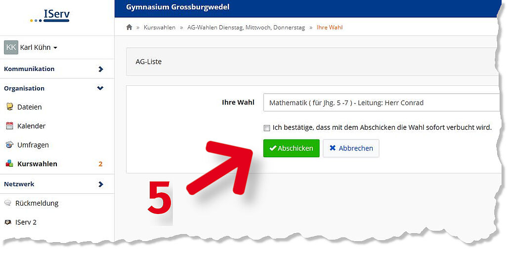 1. Modul "Kurswahlen" auswählen